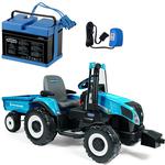 Little farmers will enjoy the signature New Holland blue of this 12-volt tractor. It includes a working FM radio and a detachable trailer with an opening end gate that will allow them to help out in the garden (or haul around their stuffed animal friends!). The T8 travels at two speeds -- 2.25 and 4.5 mph, plus reverse. Parents will love being able to control the vehicle speed of beginning riders with the 2nd gear lockout feature. An adjustable seat with flip-up armrests lets the T8 grow with child.