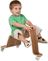 | The Svan Creativity Cruiser is a uniquely shaped ride-on-toy designed to help toddlers gain motor skills and develop a sense of balance and coordination by pushing themselves along with their feet. The sculpted curves of the bent birch wood cruiser provide a safe and sturdy seat for children while its abstract design nurtures active imaginations and encourages creative thinking. Children love pretending that the cruiser is something different every time they climb on. It can be a dragon, a horse or even a race car! |